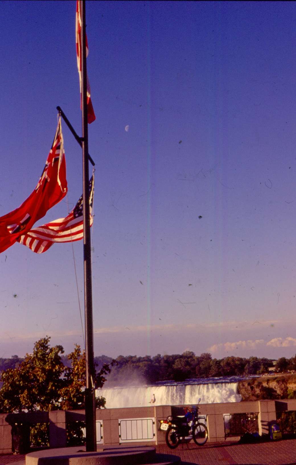 Niagara Şelalesi’nin Amerika tarafını gezdikten sonra, at nalı şeklindeki ünlü Kanada şelalelerini görmek için sınırı geçmeye karar verdik. Havalar iyice serinlediği için Kanada’da uzun bir gezi den vazgeçtik. Karavanı ABD tarafında bırakıp, Türkiye’den beraberimizde getirdiğimiz Türk plakalı motosikletimizle yola çıktık. Nehrin iki yakasında kurulu turistik şehirleri birbirine bağlayan köprü aynı zamanda sınır kapısı. Hafif çiseleyen yağmur ve yoğun trafik eşliğinde ABD’den Kanada’ya geçtik; böylece motosikletimiz de bizimle birlikte uluslararası yolculuğuna resmen başlamış oldu.