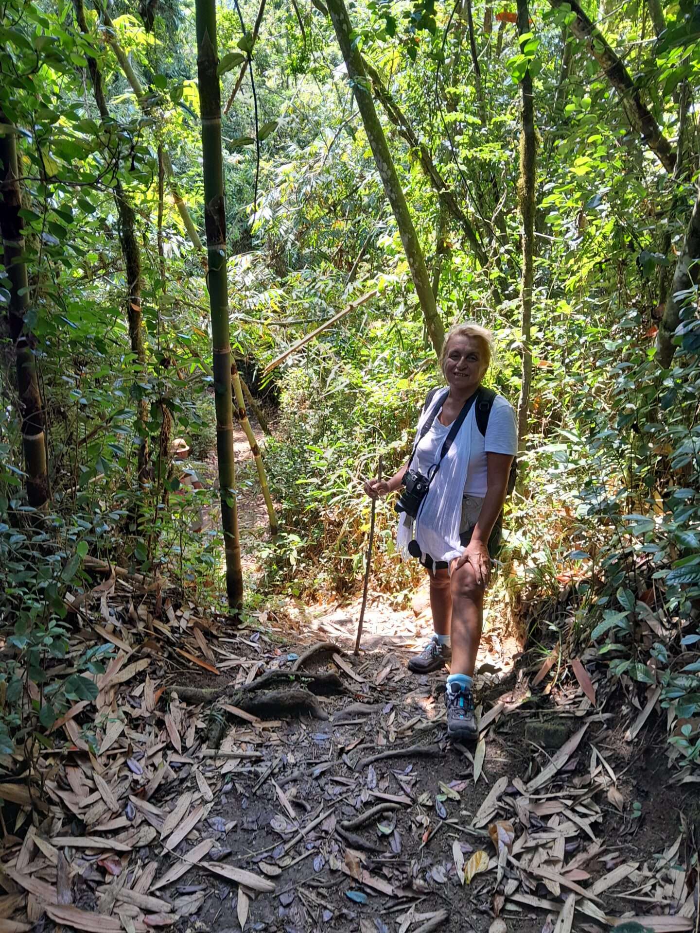 Buraya ulaşmak için yağmur ormanları içinde 3.5 km yürüdük ve giriş kapısından 519 metre yüksekliğe tırmandık.