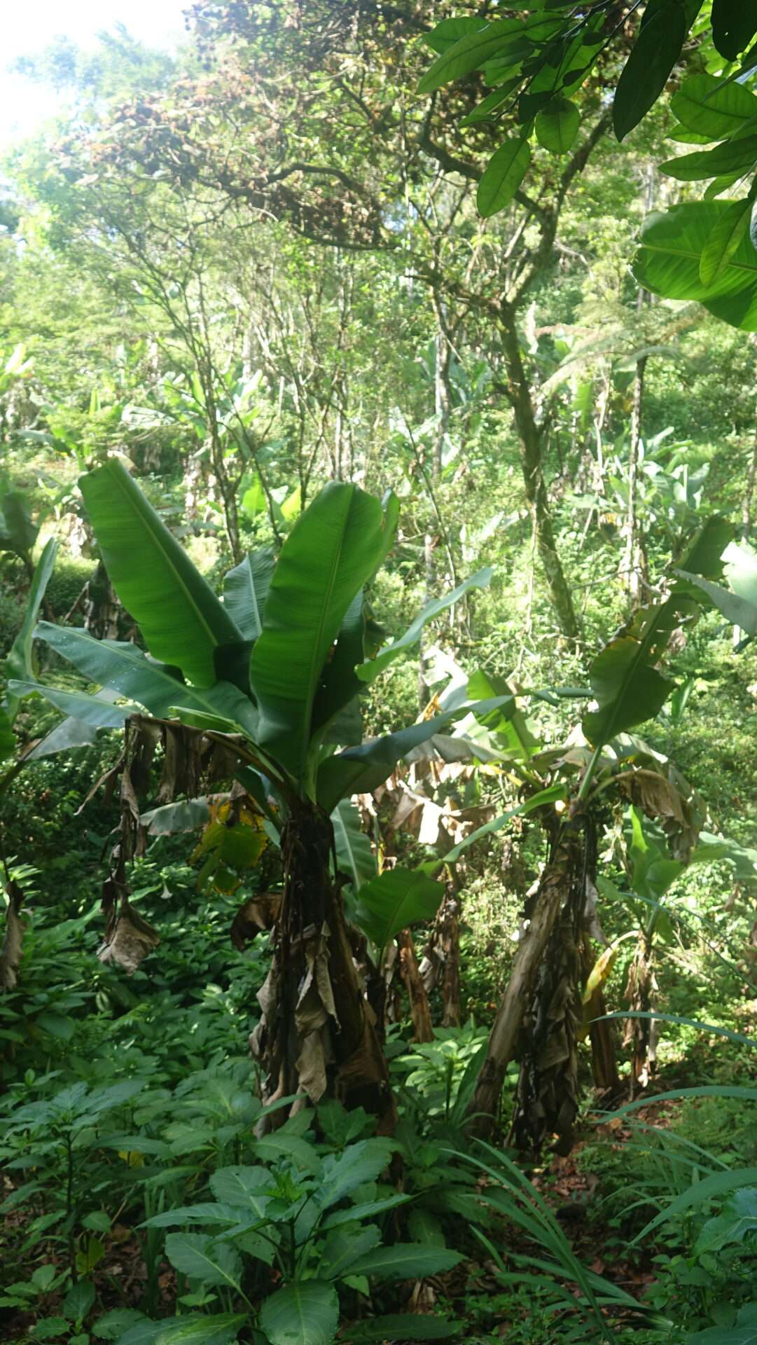Yüksek ağaçlar ve tropikal bitkiler etrafımızı sarıyor.
